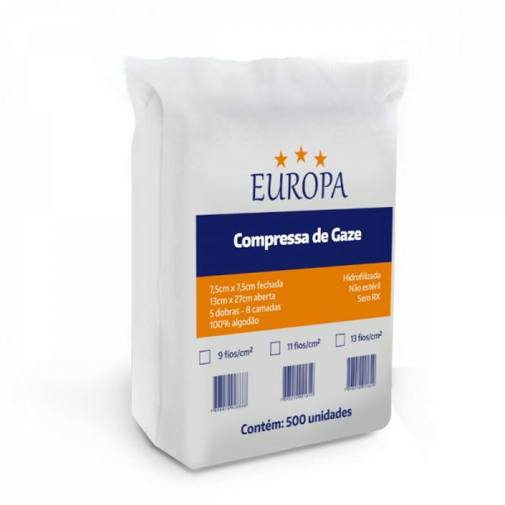 COMPRESSA DE GAZE 09F. C/500 NAO ESTERIL 7,5 CM X 7,5 CM EUROPA